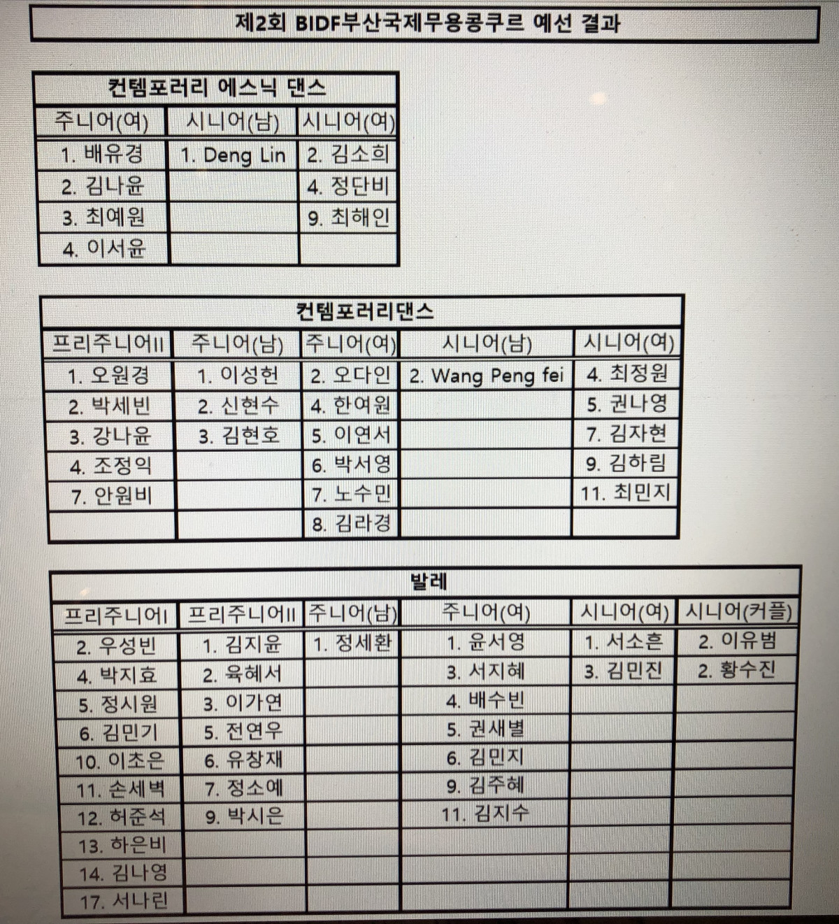제2회 BIDF부산국제무용콩쿠르 예선경연 결과발표